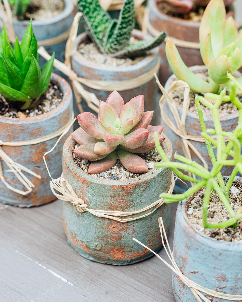 Ofrecemos cactus y suculentas en formato de pequeño recuerdo, ideales para dar como regalo a tus invitados en fechas especiales.